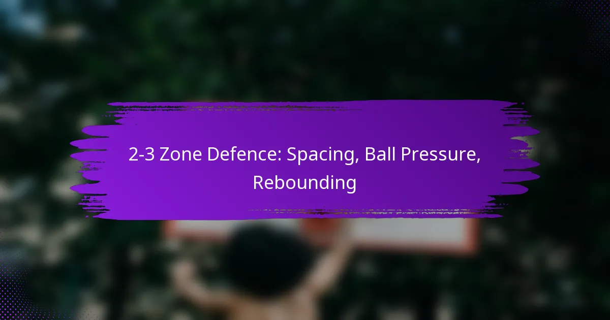 The 2-3 zone defence is a basketball strategy designed to protect the paint with three players while two defend the perimeter, effectively limiting inside scoring opportunities. Key elements such as spacing, ball pressure, and rebounding are essential for maintaining defensive integrity and disrupting the opponent’s offensive flow. By ensuring proper spacing, defenders can cover their areas while supporting teammates, while aggressive ball pressure can force turnovers and limit offensive options.