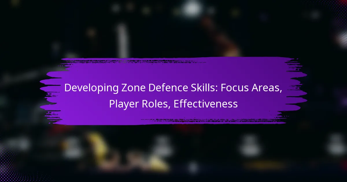 Developing zone defence skills is essential for any team aiming to enhance their defensive strategy. Key focus areas include positioning, communication, decision-making, and physical conditioning, all of which contribute to a cohesive and effective defence. By understanding defined player roles within the zone, teams can better coordinate their efforts and adapt to offensive plays, ultimately limiting scoring opportunities for opponents.