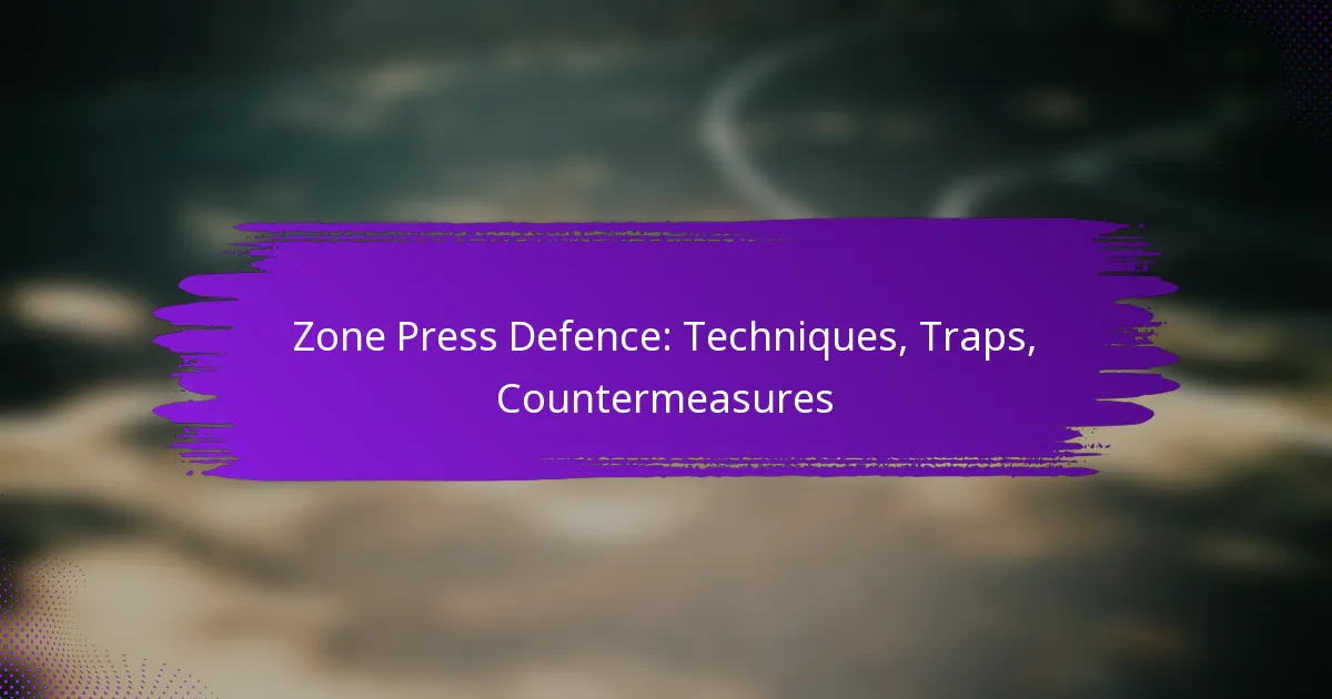 Zone press defence employs specific techniques to disrupt the opposing team’s offensive flow by applying pressure and forcing turnovers. Key elements include strategic player positioning, effective movement patterns, and clear communication among team members.